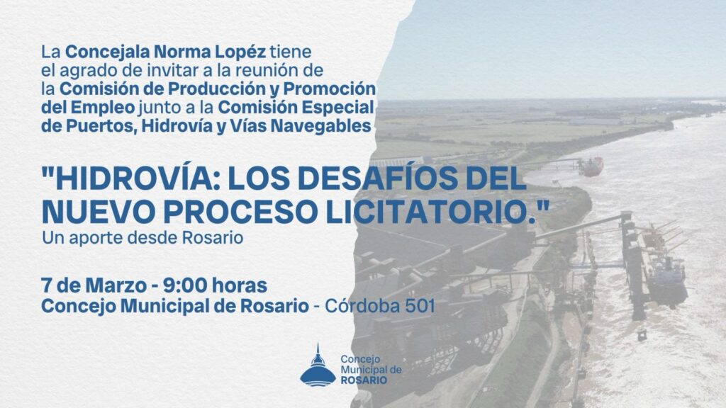 El viernes 7 de marzo a las 9hs, en el recinto de sesiones del Concejo Municipal de Rosario, tendrá lugar un encuentro que se presenta como una oportunidad clave para debatir el futuro de la Hidrovía, no solo como una vía estratégica para la circulación de la riqueza nacional, sino también como un espacio geográfico y ambiental de vital importancia para las y los rosarinos.