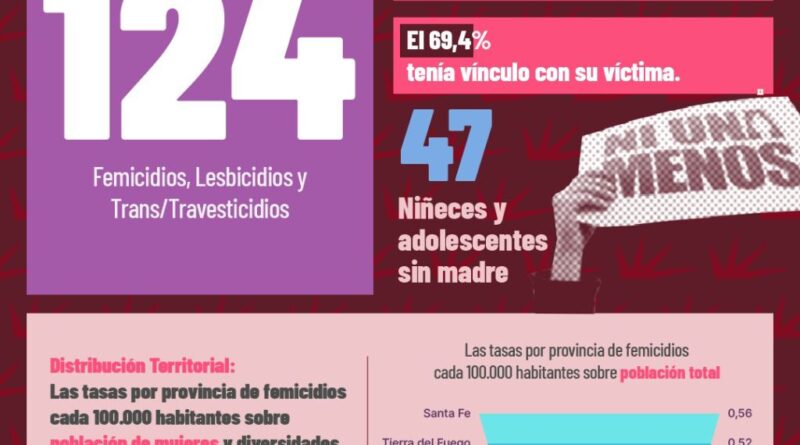 En lo que va del 2025, el Observatorio registró 124 femicidios, lesbicidios y travesticidios, de los cuales el 60,5% fueron cometidos por parejas, ex parejas o familiares, y el 64,5% ocurrieron en el hogar de las víctimas o en espacios compartidos, es decir, que el hogar es un territorio de riesgo. Esta violencia extrema no solo persiste: se reproduce de manera estructural en una sociedad marcada por la desigualdad, la impunidad y el abandono estatal.